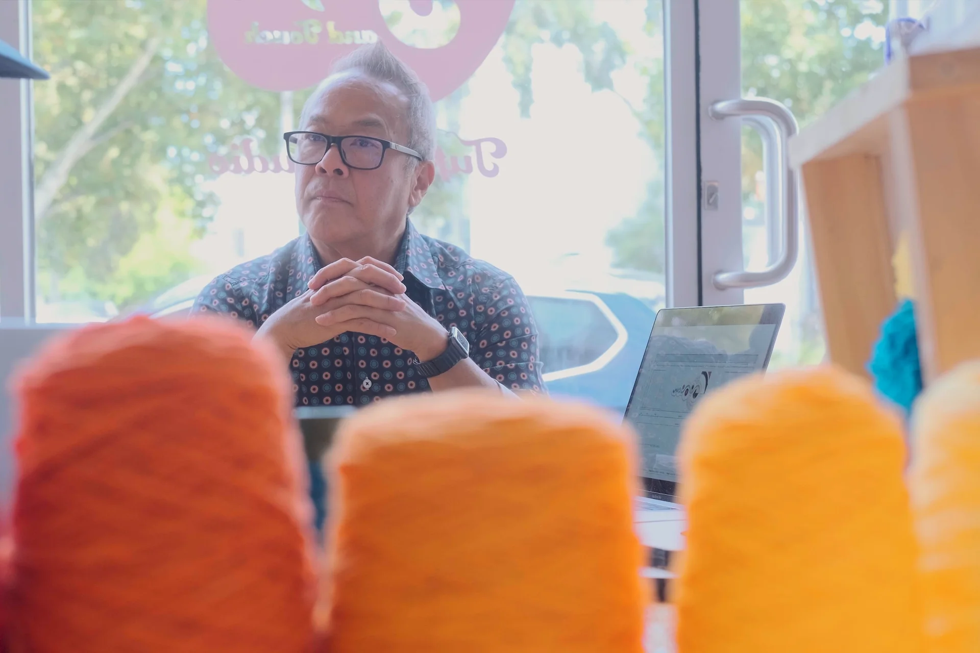 Installed at the heart of the organisation’s communal space, the artwork invites people to gather, reflect, and connect - transforming the Town Hall into a living symbol of unity. Through colour, geometry, and motion, the tapestry expresses the act of people coming together - circles and pathways interwoven to represent movement, energy, and belonging. Its material softness contrasts with the corporate architecture surrounding it, grounding the space in warmth, culture, and storytelling.