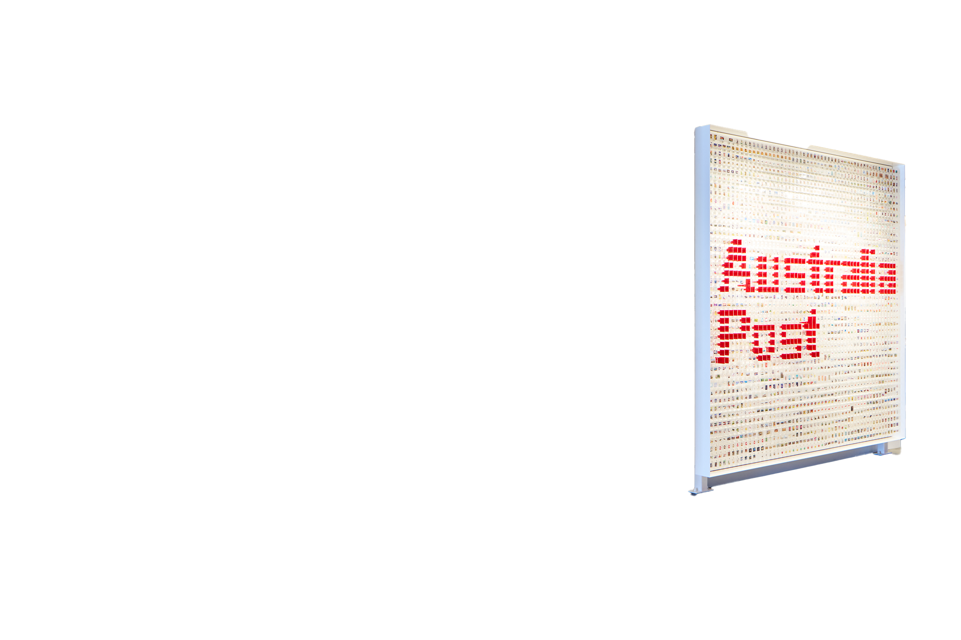 Designed, prototyped, and assembled in UnitedMake’s Richmond workshop, the system was installed as a continuous grid wall within the Support Centre. Every stamp was placed by hand, one at a time, creating a meticulous rhythm of colour, image, and history.